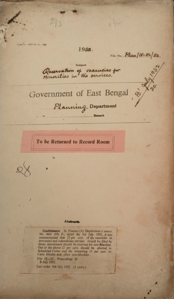 | Rack No. 36, Bundle No. 05, SI No. 235 Release of Security deposits of govt. servants of Un-divided Bengal opting for East Bengal a west Bengal. | Rack No. 36, Bundle No. 05, SI No. 236 The East Bengal services Recruitment rules 1950. | Rack No. 36, Bundle No. 05, SI No. 237 Crossing of efficiency bar by Mr. S. Ahmed assistant Secretary planning department. | Rack No. 36, Bundle No. 05, SI No. 238 Reservation of vacancies for minorities in the services. | Rack No. 36, Bundle No. 05, SI No. 239 Setting up of a purchase and Inspection Unit in Japan. | Rack No. 36, Bundle No. 05, SI No. 240 Confirmation of temporary Assistants. | Rack No. 36, Bundle No. 05, SI No. 241 Provincial Industrial advisory council proceeding of the First meeting. |