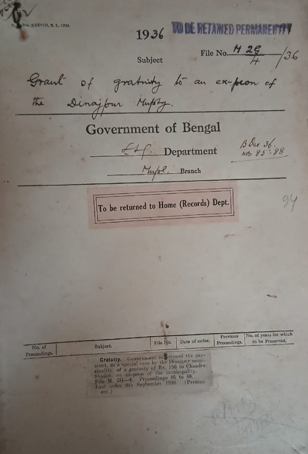 National Archives of Bangladesh SB-Room No 102 | Rack No. 12, Bundle No. 09 Sl No. 594 (Browse shelf(Opens below)) | 1 | 1 | 65965 |