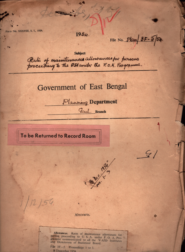 | Rack No. 37, Bundle No. 10, SI No. 472 Technical Assistance Requirements for 1955. | Rack No. 37, Bundle No. 10, SI No. 473 Social uplift Scheme Procedure for approval. | Rack No. 37, Bundle No. 10, SI No. 474 Training in Social work. | Rack No. 37, Bundle No. 10, SI No. 475 Rates of maintenance allowances for persons proceeding tot U.S.A. under the F.O.A. Programme. | Rack No. 37, Bundle No. 10, SI No. 476 Decision of the Economic Council regarding recurring experditure and development loans etc. | Rack No. 37, Bundle No. 10, SI No. 477 Budgeting and accounting of cost of stores obtained from U,K, through the agency of the High Commissioner for Pakistan in London | Rack No. 37, Bundle No. 10, SI No. 478 Claim of Government officers to higher pay or promotion in return from training abroad was not approved by the government of East Pakistan. |
