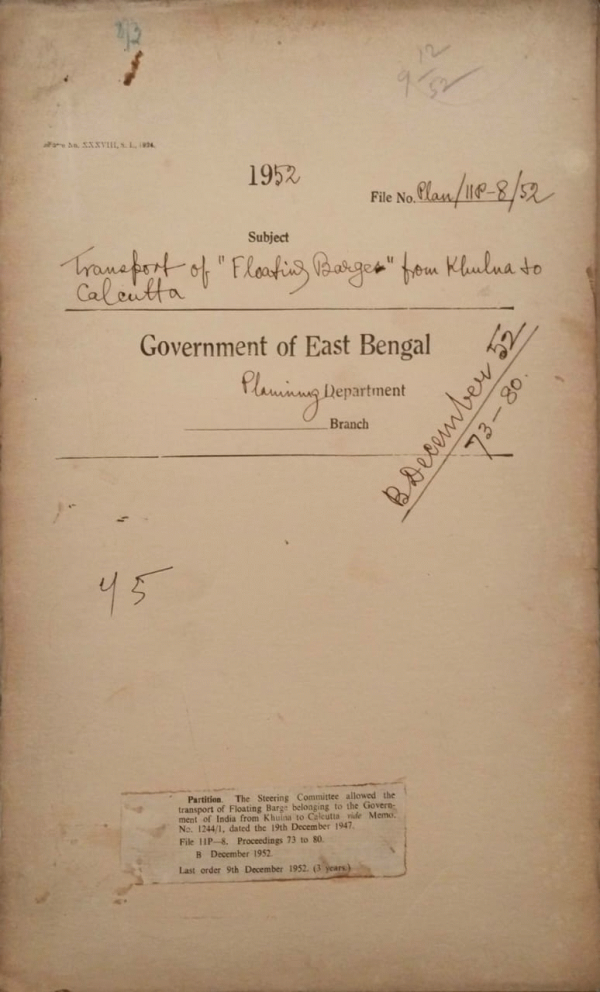 Transport of floating barge belonging to govt. of India from Khulna to Calcutta.