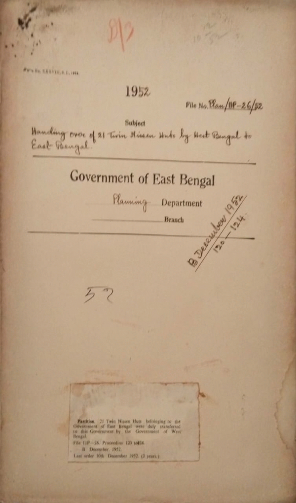 21 Twin Nissen Huts belonging by West Bengal to East Bengal.