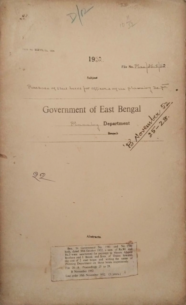 | Rack No. 36, Bundle No. 06, SI No. 302 Sixth Commonwealth foresting Conference. | Rack No. 36, Bundle No. 06, SI No. 303 Scholarship fellowship training grants under the United Nations technical assistance programme etc. | Rack No. 36, Bundle No. 06, SI No. 304 Requirements of funds for execution of social uplift schemes. | Rack No. 36, Bundle No. 06, SI No. 305 Purchase of steel foxes for officers of the planning department. | Rack No. 36, Bundle No. 06, SI No. 306 Instruction regarding curtailment of expenditure. | Rack No. 36, Bundle No. 06, SI No. 307 Pre-partition claims of Govt. servants opting for East Bengal. | Rack No. 36, Bundle No. 06, SI No. 308 Economic commission for Asia and the far East Nomination of Mr. M.S. Khan Assistant Secretary ministry of economic affairs as liaison officer for dealing with the secretariat of the ECAFE Vice Mr. Md. H. Farukhi. |