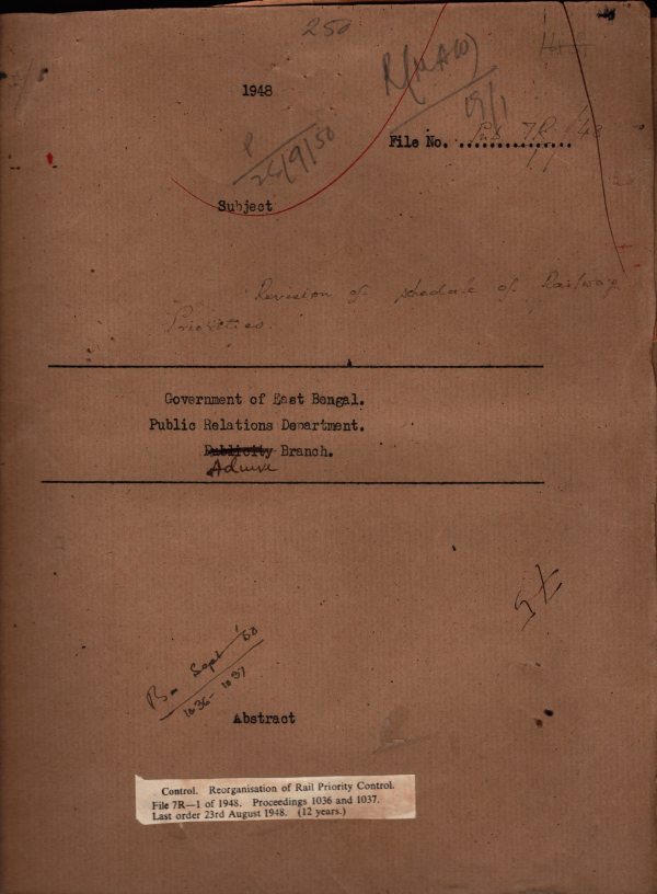 | Rack No. 18, Bundle No. 01, SI No. 04 Posting transfer etc, of peons under the District and Sub- divisional publicity organizers. | Rack No. 18, Bundle No. 01, SI No. 05 Amendment in the General Provident Fund ( Bengal Service) Rules. | Rack No. 18, Bundle No. 01, SI No. 06 Arrest of Mv. Mosharraf Hussain Michener in conception with in arm dacoities case. | Rack No. 18, Bundle No. 01, SI No. 07 Reorganization of Roll priority control. | Rack No. 18, Bundle No. 01, SI No. 08 Revised estimates for 1948-49 and budget estimates for 1949-50 were furnished to the Finance Department | Rack No. 18, Bundle No. 01, SI No. 09 Particulars of District and Sub-Divisional Publicity Staff. | Rack No. 18, Bundle No. 01, SI No. 10 Transfer of District and Sub- Divisional Publicity organisms. |