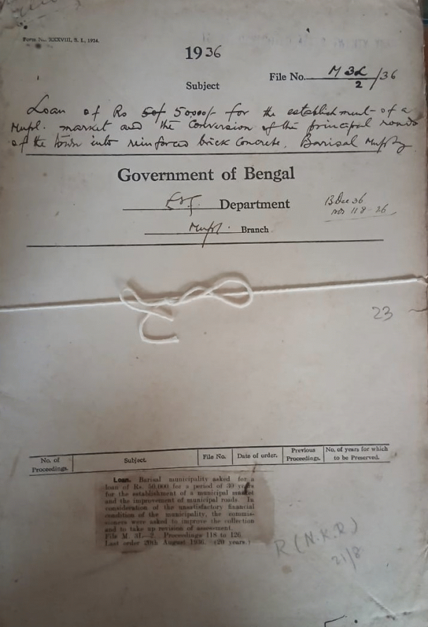 Loan of Re: 50,000/- for the establishment of a nicipal market and the conversion of the Menimcipal ronds Barisal Municipality
