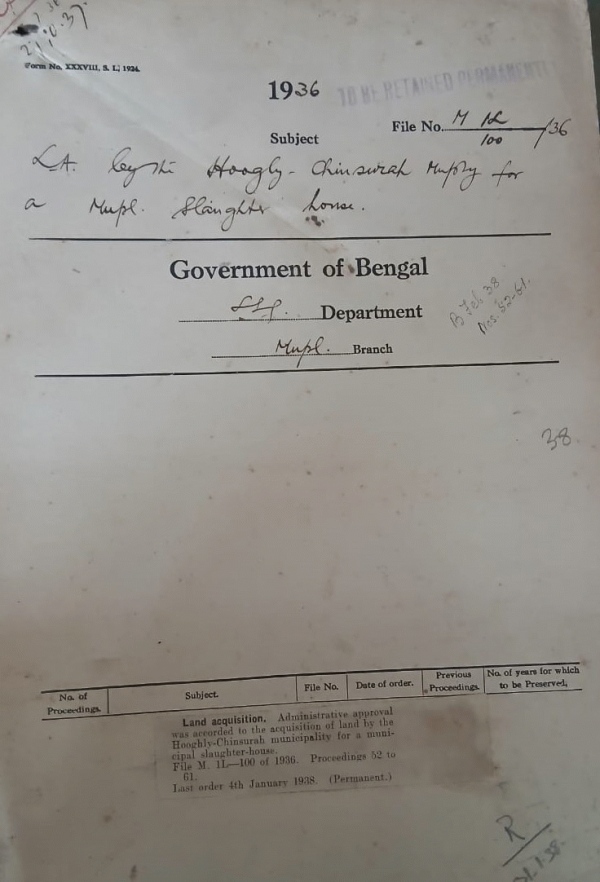 | Rack No. 12, Bundle No. 10 Sl No. 635 LA by the Bansberia Municipality for making a Park. | Rack No. 12, Bundle No. 10 Sl No. 636 LA by the Bansberia Municipality for the extension of the football and recreation ground of Ward No. I and II. | Rack No. 12, Bundle No. 10 Sl No. 637 LA by the Serampore Municipality for the elevated reservoir No. 3 at Chatra. | Rack No. 12, Bundle No. 10 Sl No. 638 LA by the Hoogly Chinsurah Municipality for a Municipal Slaughter house. | Rack No. 12, Bundle No. 10 Sl No. 639 A by the Comilla Municipality for widening out the Kalitals Raod. | Rack No. 12, Bundle No. 10 Sl No. 640 Grant of a gratuity to Babu Sarba Ranjan Sidhanta, Late an Account, Dacca Municipality. | Rack No. 12, Bundle No. 10 Sl No. 641 Leasing out of a plot of P.W.D. Land to the Patuakhali Muncipality for the Construction of a plat form at the bathing ghat. |