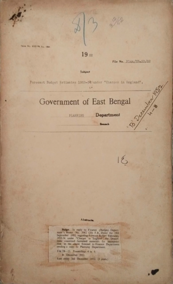 | Rack No. 36, Bundle No. 06, SI No. 308 Economic commission for Asia and the far East Nomination of Mr. M.S. Khan Assistant Secretary ministry of economic affairs as liaison officer for dealing with the secretariat of the ECAFE Vice Mr. Md. H. Farukhi. | Rack No. 36, Bundle No. 06, SI No. 309 Resolution for the administrative council VII session. | Rack No. 36, Bundle No. 06, SI No. 310 Schedule for 1953-54 under 63-B- development. | Rack No. 36, Bundle No. 06, SI No. 311 Forecast Budget Estimates 1953-54 under charges in England. | Rack No. 36, Bundle No. 06, SI No. 312 Half yearly progress report in respect of development schemes revenue department. | Rack No. 36, Bundle No. 06, SI No. 313 Entertainment of official delegates prior approval of finance department to obtain for the expenditure incurred on that account. | Rack No. 36, Bundle No. 06, SI No. 314 Verification of antecedents of class IV employees. |