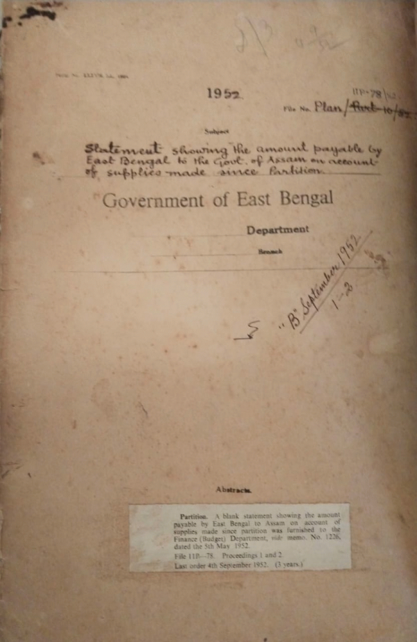 | Rack No. 36, Bundle No. 06, SI No. 324 Recruitment of Bengalee Clerical Personnel for our missions abroad. | Rack No. 36, Bundle No. 06, SI No. 325 Expatriation allowance. | Rack No. 36, Bundle No. 06, SI No. 326 East Bengal Provincial sailors soldiers and Airmans board. | Rack No. 36, Bundle No. 06, SI No. 327 Statement showing the amount payable by East Bengal to the govt. of Assam on account of supplies made since partition. | Rack No. 36, Bundle No. 06, SI No. 328 Technical assistance programme of Pakistan for the calendar year 1953. | Rack No. 36, Bundle No. 06, SI No. 329 List of development schemes approved by the Centre progress report up to 31.03.1952. | Rack No. 37; Bundle No. 01 SL No. 15 Boarding charges in the hostels attaches to the Rangamati High English School. |