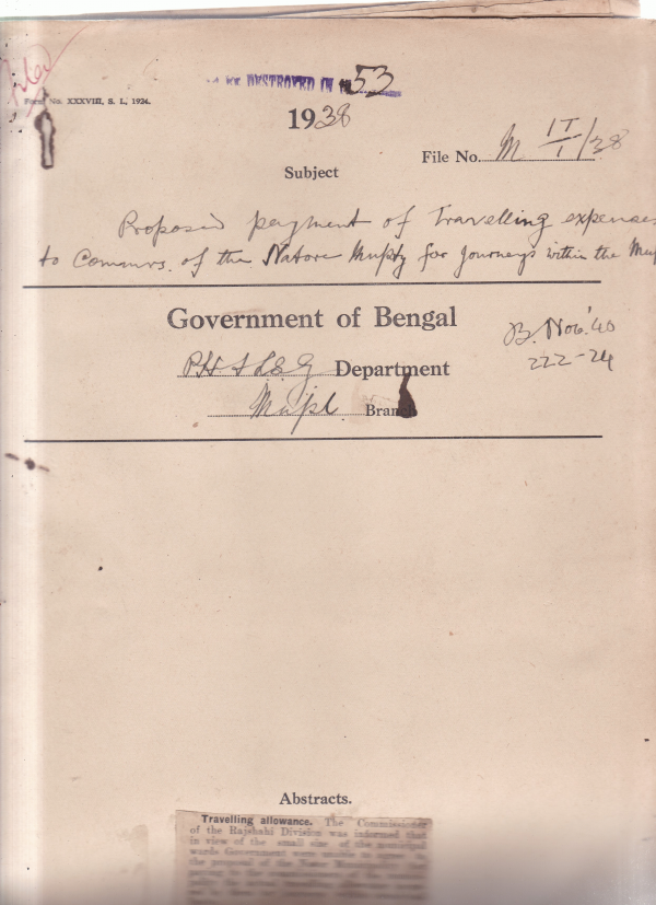 Proposed payment of T.A. to Commissioner of the Natore Municipality for journey within the Municipality.