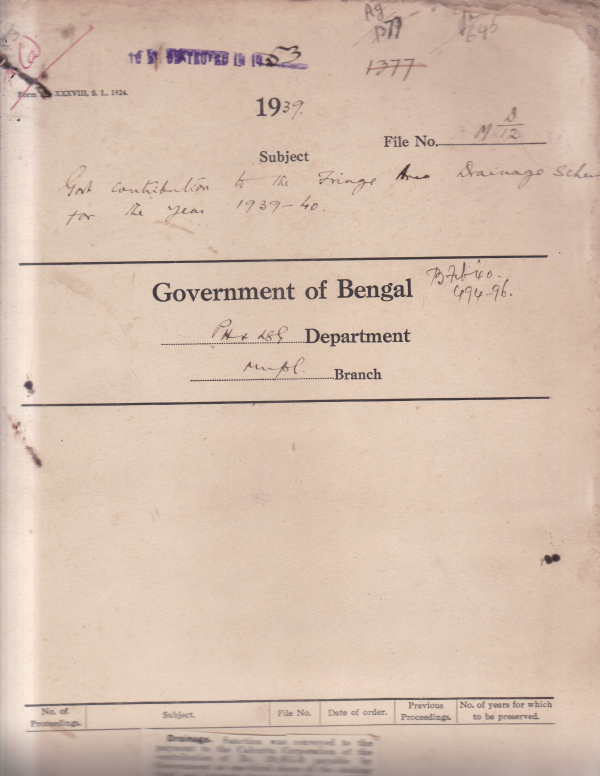 Govt. Contribution to the fringe area drainage scheme for the year 1939-40.