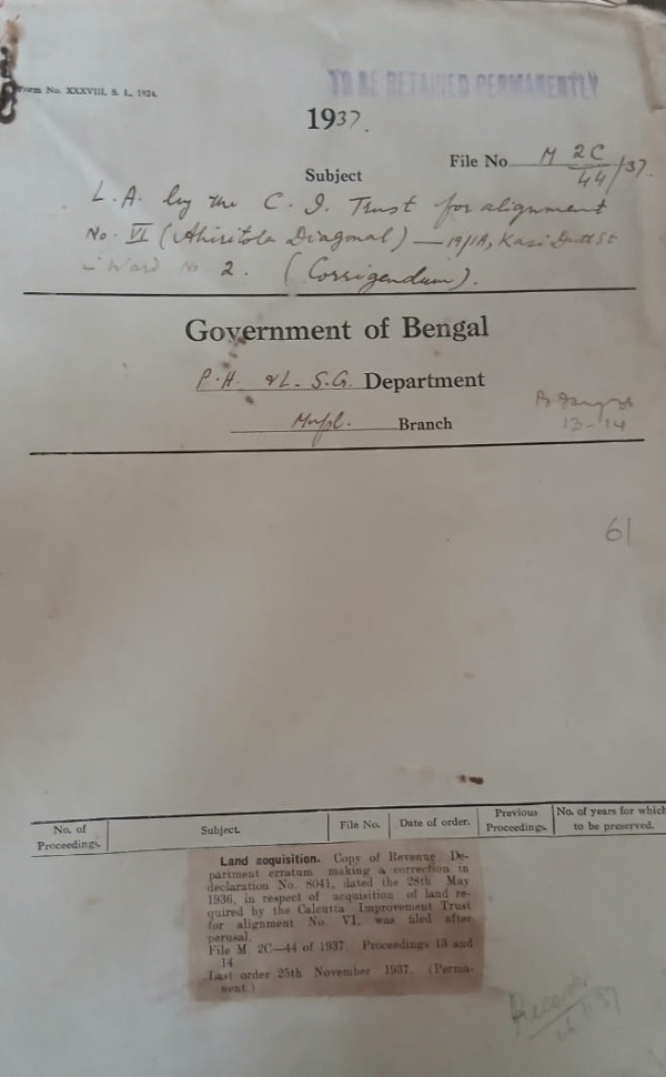 | Rack No. 12, Bundle No. 10 Sl No. 658 Proceedings of the Annual general Meeting of the Kanchrapara Ratepayers Association. | Rack No. 12, Bundle No. 10 Sl No. 659 Complaint by Mr. Sawday against the mantut in which rating cases are tried in Calcutta and Sealdah. | Rack No. 12, Bundle No. 10 Sl No. 660 Expenditure by Bardwan Municipality of the surplus of water rate in other heads with ought govt. Sanction. | Rack No. 12, Bundle No. 10 Sl No. 661 L.A. by the C.L. Trust for alignment No. VI-19/1a, Kasi Datt in ward No. 2. | Rack No. 12, Bundle No. 10 Sl No. 662 C.Q. by Mr. Lalit Chandra Das, M.L.A., regarding Proposal for the establishment of a municipality at Feni. | Rack No. 12, Bundle No. 10 Sl No. 663 Amendment in the Superior Service (India) Family Pension fund Rules. | Rack No. 12, Bundle No. 10 Sl No. 664 Honorius to Mr. W.A. Stoddard, Secretary to the Darjeeling Municipality. |