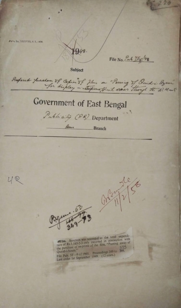 Proposed purchase of copies of flim on passing of Quid-e-Azam, for display.