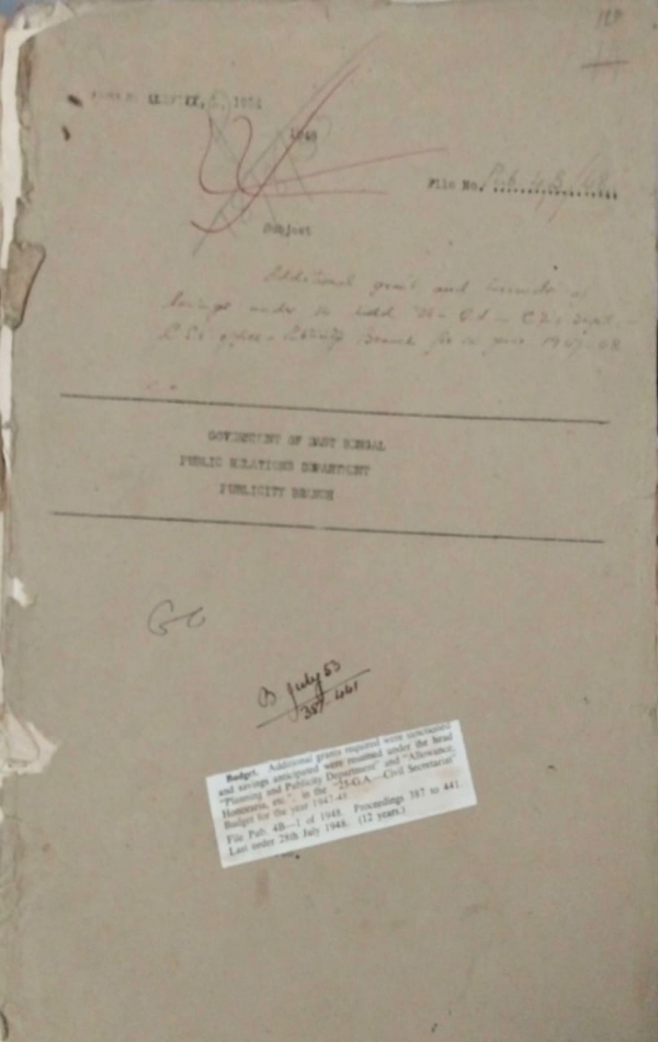 | Rack No. 18, Bundle No. 07, SI No. 453 Additional grants and surrender of savings under the head 25-G.A.- C.M.s department C.S.s office publicity branch for the year 1947-48. | Rack No. 18, Bundle No. 07, SI No. 454 Proposed purchase of copies of flim on passing of Quid-e-Azam, for display. | Rack No. 18, Bundle No. 07, SI No. 455 Formation of the Ministry of states and Frontier Regions. | Rack No. 18, Bundle No. 07, SI No. 456 Additional grants and surrender of savings under the head 25-G.A. planning and publicity department and allowance Honoraria etc. publicity branch for the year 1947-48. | Rack No. 18, Bundle No. 07, SI No. 457 Retention of the posts of A.D.P.S. | Rack No. 18, Bundle No. 07, SI No. 458 Grant of Special holidays to Shia-Muslims on account of Muharram. | Rack No. 18, Bundle No. 07, SI No. 459 Proposed realization an advance given to Babu Sunil Ranjan Gui. |