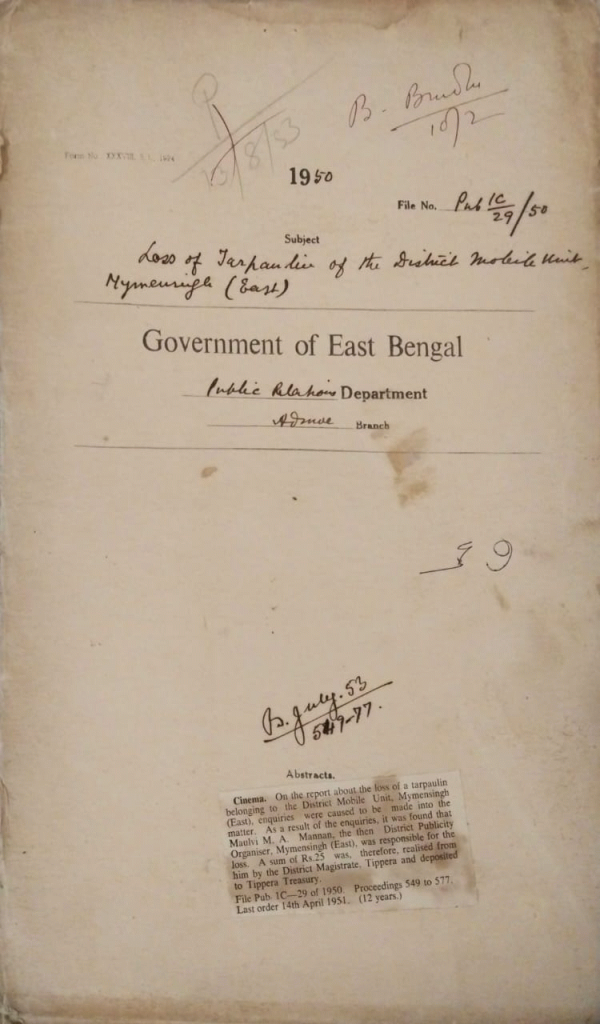 | Rack No. 18, Bundle No. 07, SI No. 463 Additional allotment required and savings anticipated u/h 25. G.A. civil Secretariat publicity. | Rack No. 18, Bundle No. 07, SI No. 464 Proposed creation of the posts of reporters, one official photographer and a P.A.E. operator. | Rack No. 18, Bundle No. 07, SI No. 465 Payment of bill in connection with repair of vehicle NO. B.L.D. 9097. | Rack No. 18, Bundle No. 07, SI No. 466 Loss of Tarpaulin of the District Mobile Unit Mymensingh (East). | Rack No. 18, Bundle No. 07, SI No. 467 Starred question by Mr. Emaduddin Ahmed regarding the organization of the publicity department | Rack No. 18, Bundle No. 07, SI No. 468 Report of unauthorized movement of the operator, D.M. Unit, Tippera. | Rack No. 18, Bundle No. 07, SI No. 469 Return of books issued on loan from Secretariat Library. |
