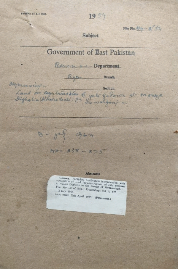 Acquisition of land for construction of Jute godown at mauza Dighalia in the district of Mymensingh.