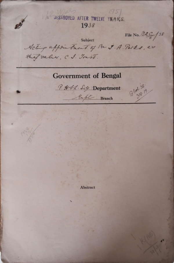 Acting application of Mr. J.A. Parks, Dy. Valuer, Calcutta Improvment Trust.