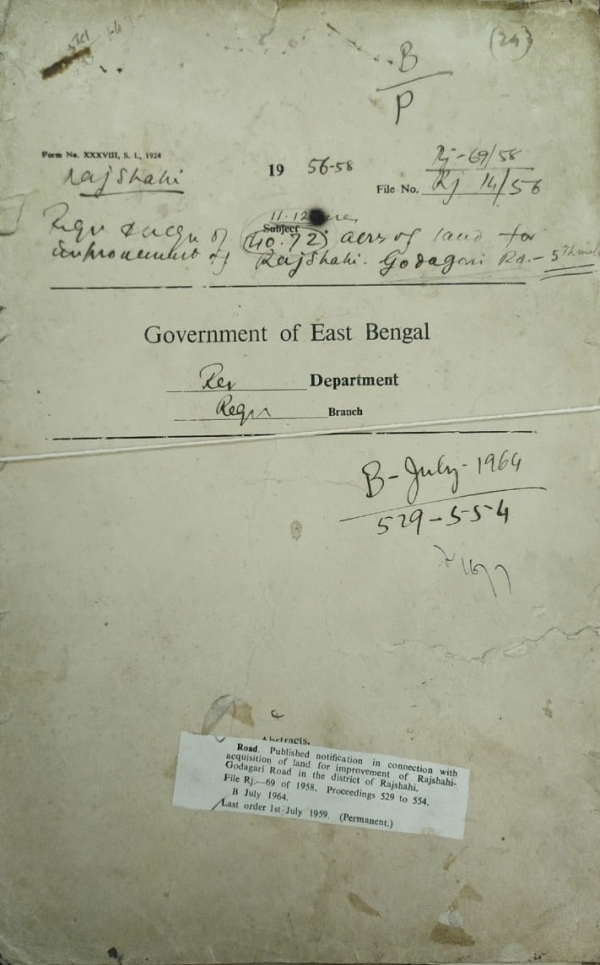 Acquisition of land for Improvement of Rajshahi-Godagari Road in the district of Rajshahi.