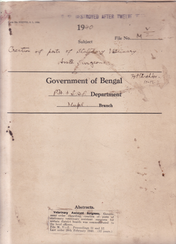 | Rack No. 12, Bundle No. 16, Sl No. 1090 Proposal grant-in aid of Rs. 100 by the Bunsberia Municipality to the Imam Bara Hospital at Chinsurah. | Rack No. 12, Bundle No. 16, Sl No. 1091 Regulation under the electricity Rules 1937. | Rack No. 12, Bundle No. 16, Sl No. 1092 Adoption of model by-laws regarding maintenance of survey maps by the Mymensingh Municipality u/s 463 of the Act. | Rack No. 12, Bundle No. 16, Sl No. 1093 Creation of posts of Stationary veterinary assistant surgeons. | Rack No. 12, Bundle No. 16, Sl No. 1094 Govt. Contribution to the Fringe Area Drainage scheme for the year 1939-40. | Rack No. 12, Bundle No. 16, Sl No. 1095 L.A. by the Chandpur Municipality for a free Primary School for boys in ward no. 3. | Rack No. 12, Bundle No. 16, Sl No. 1096 L.A. by the Howrah Municipality for easing out and improving a Corner at the junction of Gopal banerjee lane and Nepal saha lane. |