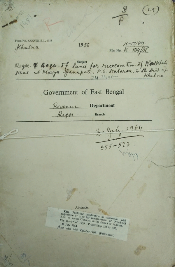 Acquisition of land for re-excavation of Nowkhali khal at mouza Gonapati in the district of Khulna.