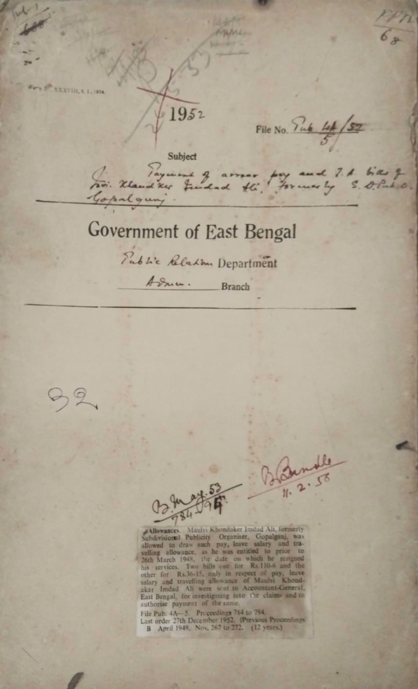 Payment of arrear pay Khondaker Imdad Ali,formerly S.D.O. gopalganj.