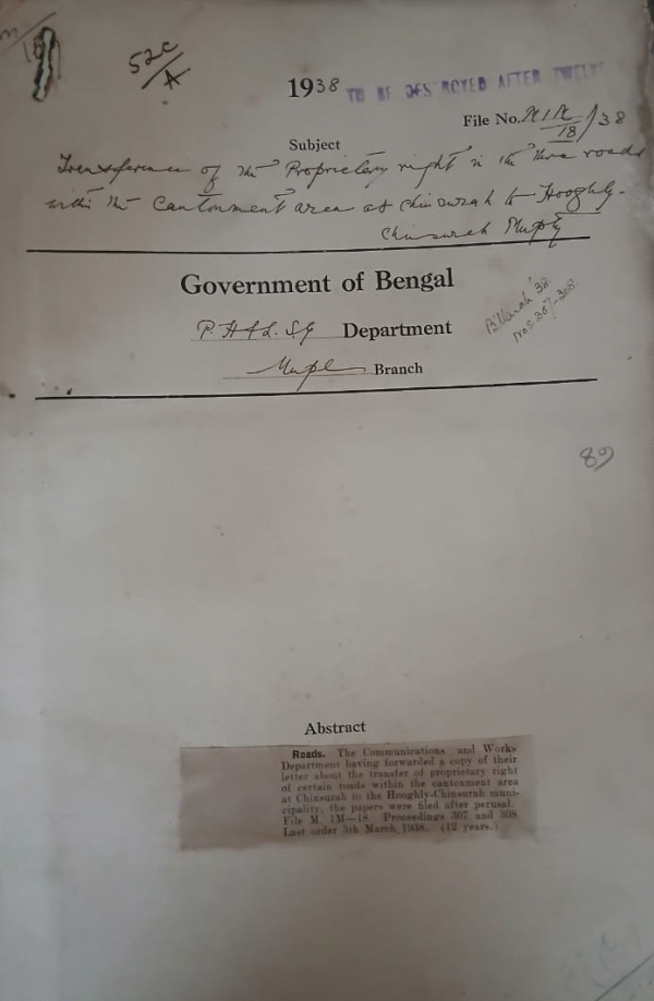 | Rack No. 12, Bundle No. 10 Sl No. 686 Extension of the term of Bankura Municipality. | Rack No. 12, Bundle No. 10 Sl No. 687 Water Hyacinth Bye-laws of the Rajbari Municipality. | Rack No. 12, Bundle No. 10 Sl No. 688 L.A. by the Dacca Municipality for opening out a Methar's Passage at Sha-Shaheb's Lane. | Rack No. 12, Bundle No. 10 Sl No. 689 Transfer of the property right of certain roads within the Cantonment area at Hooghly Chisurah Municipality | Rack No. 12, Bundle No. 10 Sl No. 690 Expenditure of Rs. 75/- incurred by the Nabadwip Municipality, Nadia. | Rack No. 12, Bundle No. 10 Sl No. 691 Appointment of Babu Phanindra Nah Mukherjee as an assessors of Kanchrapara Municipality. | Rack No. 12, Bundle No. 10 Sl No. 692 Revision of boundary, Comilla municipality (Extension of western boundary limit). |