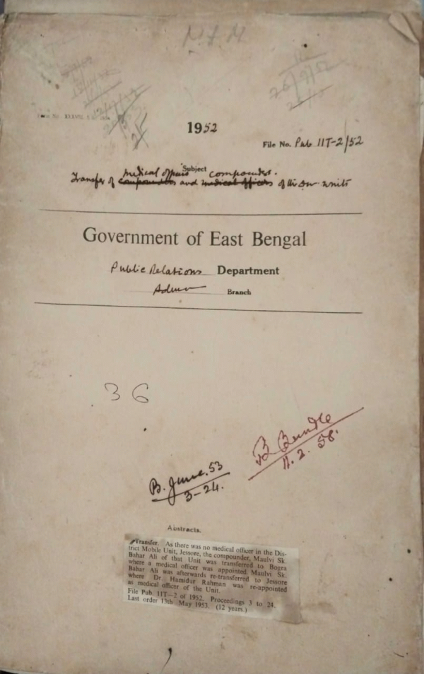 | Rack No. 18, Bundle No. 07, SI No. 485 Temporary appointment of sub-divisional publicity organizer. | Rack No. 18, Bundle No. 07, SI No. 486 Petitions of forth posts of operators and assistant operator. | Rack No. 18, Bundle No. 07, SI No. 487 The East Bengal Services recruitment rules 1950. | Rack No. 18, Bundle No. 07, SI No. 488 Transfer of medical officers and compounders of the Dacca district mobile unit. | Rack No. 18, Bundle No. 07, SI No. 489 Disciplinary action taken against Mvi. Mansur Ali a record supplier of this department for negligence of duties. | Rack No. 18, Bundle No. 07, SI No. 490 Contribution towards post office Insurance fund by Mvi. Abdus Samad Khan. | Rack No. 18, Bundle No. 07, SI No. 491 Change of designation of D.P.O. Chittagong to district publicity organizer. |