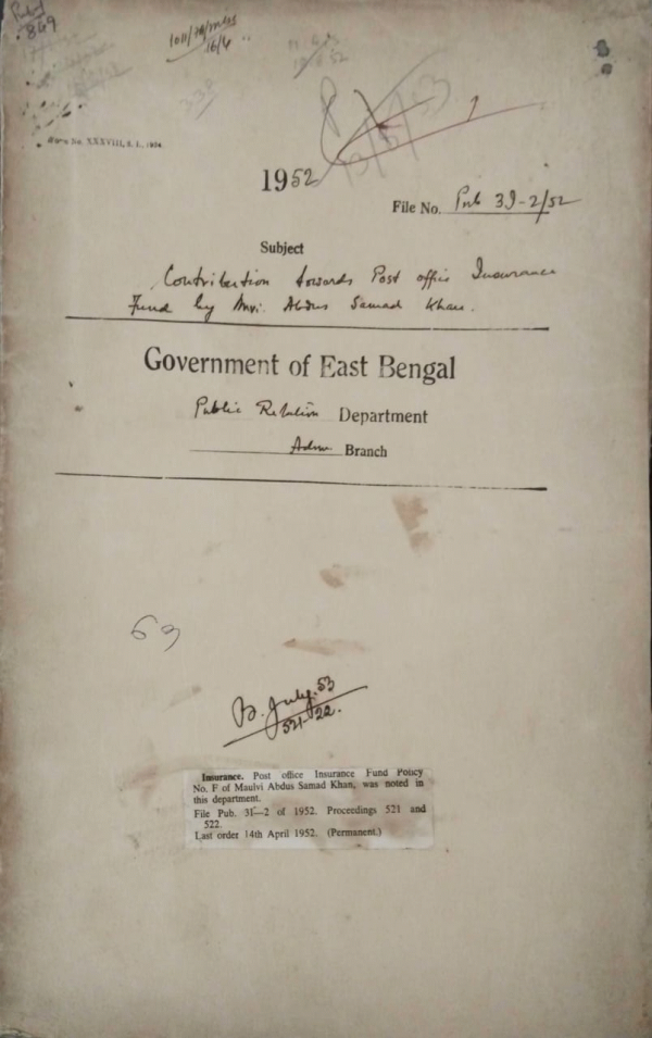 Contribution towards post office Insurance fund by Mvi. Abdus Samad Khan.