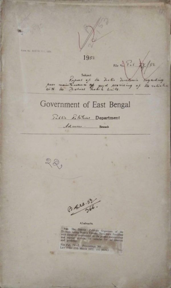 | Rack No. 18, Bundle No. 07, SI No. 492 Rules for Accreditation of press correspondents in East Bengal. | Rack No. 18, Bundle No. 07, SI No. 493 Grant of permission of Ananda Mohan Biswas for Datara recital at the radio Pakistan, Dacca. | Rack No. 18, Bundle No. 07, SI No. 494 Purchase of spare art and tools required for maintenance of the Japanese radio sets. | Rack No. 18, Bundle No. 07, SI No. 495 Report of the motor mechanic regarding poor maintenance and servicing of the vehicles. | Rack No. 18, Bundle No. 07, SI No. 496 Sureties of Mr. Hussain (D.P.). and Mr. Anwar Hussain (D.D.P) for loan of Rs. 2000/- form the Pak. Refugee rehabilitation finance corporation. | Rack No. 18, Bundle No. 07, SI No. 497 Sanction for purchase of two copies of daily Newspapers for the use of the District and sub-divisional publicity organizers. | Rack No. 18, Bundle No. 07, SI No. 498 Fixation of pay Mvi.Chowdhury Shamsur Rahman, Assistant edidor public relation department. |