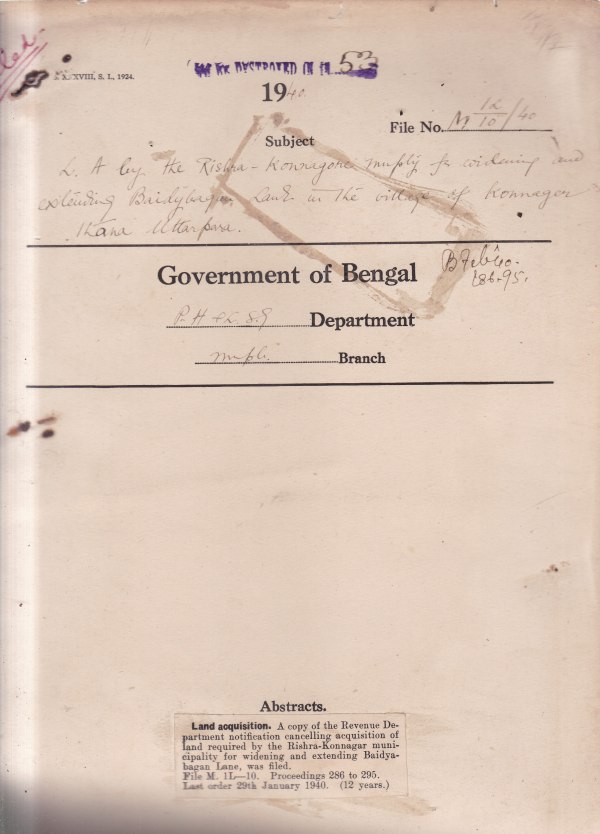 L.A. by the Rish-konnagar Municipality for widenibg extending Baidybagun lane in the village of Konnagor Thana Muttarpara.