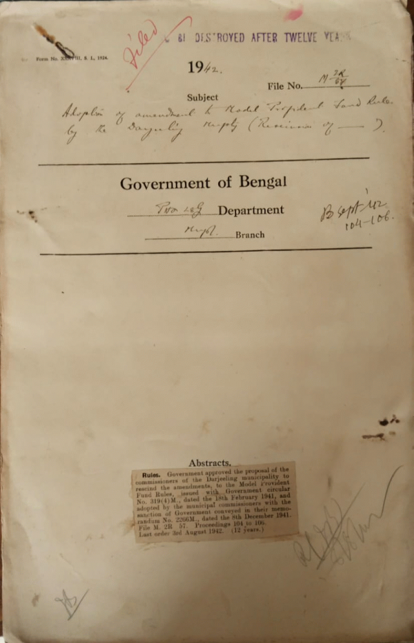 Adoption of amendment to Model Provident fund Rules by the Darjeeling Municipality.
