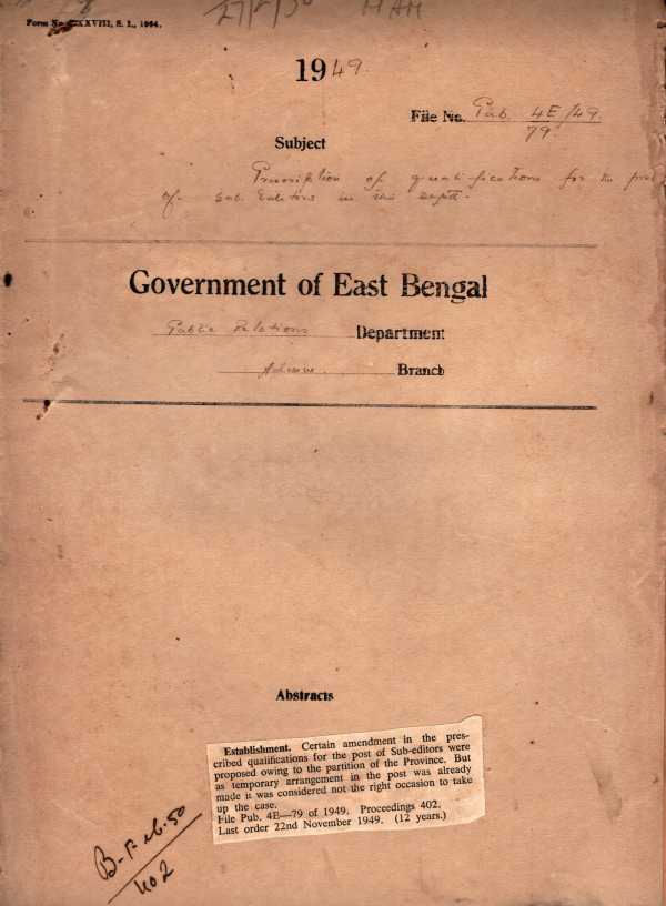National Archives of Bangladesh SB-Room No 102 | Rack No. 18, Bundle No. 01, SI No. 48 (Browse shelf(Opens below)) | 1 | 1 | 66471 |