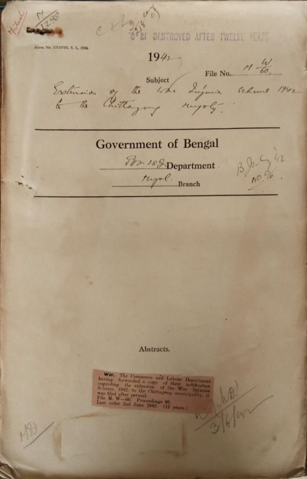 Extension of the war Injuries scheme 1942 to the Chittagong Municipality.