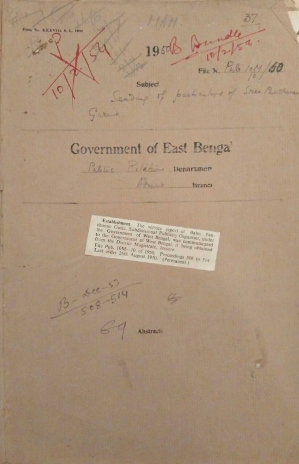 | Rack No. 18, Bundle No. 08, SI No. 522 Question pending before the East Benga legislative assembly on the termination of the session ending on the 13th march, 1950. | Rack No. 18, Bundle No. 08, SI No. 523 Creation of a Urdu section under the public relation Department. | Rack No. 18, Bundle No. 08, SI No. 524 Request from press Information officer Bahawalpur govt. furnish . | Rack No. 18, Bundle No. 08, SI No. 525 Sending of particulars of Sree Panchaman Guria. | Rack No. 18, Bundle No. 08, SI No. 526 Request from D.M. Dacca to replace Mvi. A. Rahman D.P.O. Dacca by a letter candidate. | Rack No. 18, Bundle No. 08, SI No. 527 Proposal from D.P.O. Kushtia to purchase office furniture out of the fund of the contingent express. | Rack No. 18, Bundle No. 08, SI No. 528 Prayer for rumination by ex . engineer electrical division ,Dacca in connection with her repair of publicity equipment. |