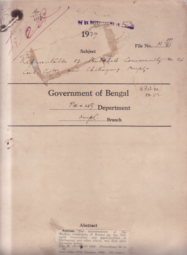 Representation of Bhudhist Community on the Calcutta Corporation and Chittagonj Municipality.