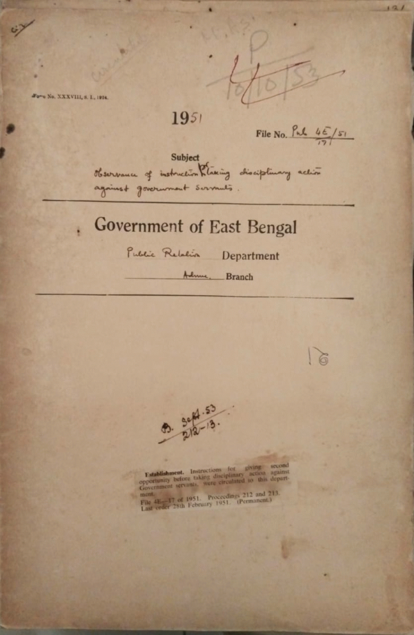 | Rack No. 18, Bundle No. 08, SI No. 532 Use of Technical Consultants under the technical co-operation schemes Colombo plan. | Rack No. 18, Bundle No. 08, SI No. 533 Counting of war services for the purpose of fixation of pay of the war services personnel appointed to civil posts. | Rack No. 18, Bundle No. 08, SI No. 534 Delegation of powers to indenters for direct purchase. | Rack No. 18, Bundle No. 08, SI No. 535 Observances of instruct for taking disciplinary action against govt. servants. | Rack No. 18, Bundle No. 08, SI No. 536 Need a complete medical examination of prospective trainees and deputation abroad. | Rack No. 18, Bundle No. 08, SI No. 537 Shifting of head quarters of the sub-divisional publicity organizer, Jamalpur. | Rack No. 18, Bundle No. 08, SI No. 538 Position of civilian govt. employees in their parent offices while serving with embodied P.N.G. Battalion. |