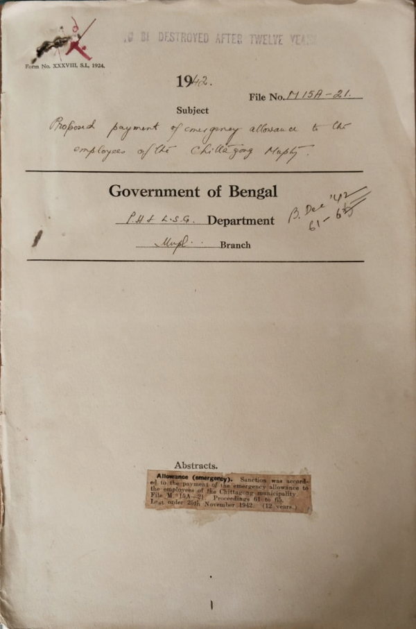 Proposed payment of emergency allowance to the employees of the Chittagong Municipality.