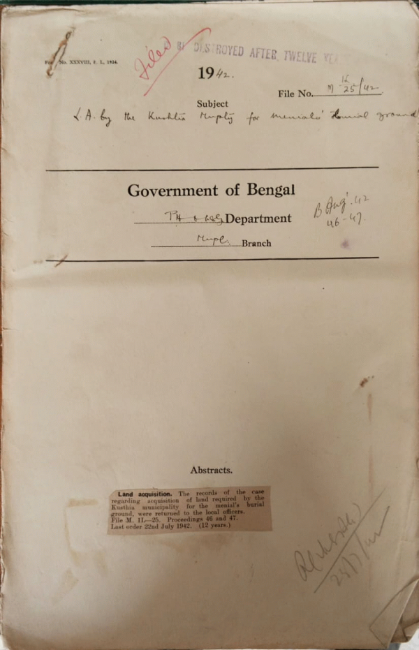 | Rack No. 13, Bundle No. 26, Sl No. 1786 Proposed payment of emergency allowance to the employees of the Chittagong Municipality. | Rack No. 13, Bundle No. 26, Sl No. 1787 Allocation of the Govt. Share of contribution for additional gratuity payable to the Chief Engineer and Dy. C.E. of the Cal. 9mp. Trust. | Rack No. 13, Bundle No. 26, Sl No. 1788 Construction of a road on C.A.V. Range, Barrackpore. | Rack No. 13, Bundle No. 26, Sl No. 1789 L.A. by the Kushtia Municipality for the Menial's burial ground. | Rack No. 13, Bundle No. 26, Sl No. 1790 Extension of the boundary of the Katwa Municipality. | Rack No. 13, Bundle No. 26, Sl No. 1791 Sanction of monthly expenditure of running three audit schools by Serampore Municipality. | Rack No. 13, Bundle No. 26, Sl No. 1792 Revision of boundary, Patuakhali Municipality. |