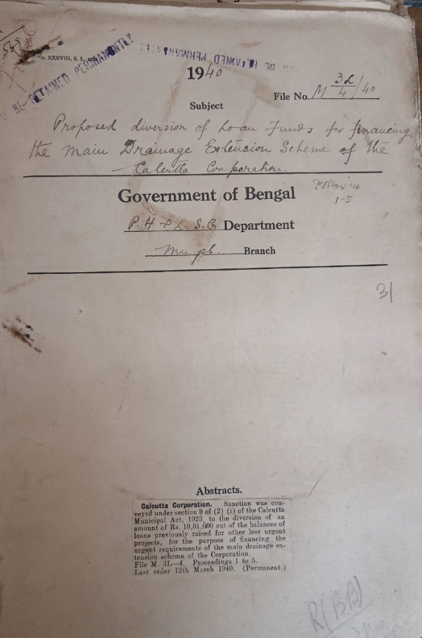 | Rack No. 13, Bundle No. 21, Sl No. 1428 Adjustment of cost of Typewriters under the part payment System. | Rack No. 13, Bundle No. 21, Sl No. 1429 Short notice by Moulvi. Moslem Ali Molla regarding extension of Service to C.E.O. Calcutta Corporation. | Rack No. 13, Bundle No. 21, Sl No. 1430 Proposed extension of the Period of appointment of Mr. Sailapati Chaterjee as the 1st Dy. Executive officer of the Calcutta Corporation. | Rack No. 13, Bundle No. 21, Sl No. 1431 Proposed diversion of Loan funds for financial the main Drainage Extension Scheme of the Calcutta Corporation. | Rack No. 13, Bundle No. 21, Sl No. 1432 Sanction to the expenditure of Rs. 75/- incurred by 1940 the Nator Municipality for presentation of an address to H.C.M. | Rack No. 13, Bundle No. 21, Sl No. 1433 Re-appointment of Dr. B.N. Dey, Chief Engineer of Calcutta Corporation. | Rack No. 13, Bundle No. 21, Sl No. 1434 Increment of pay of the Executive officer Titagarh Municipality. |