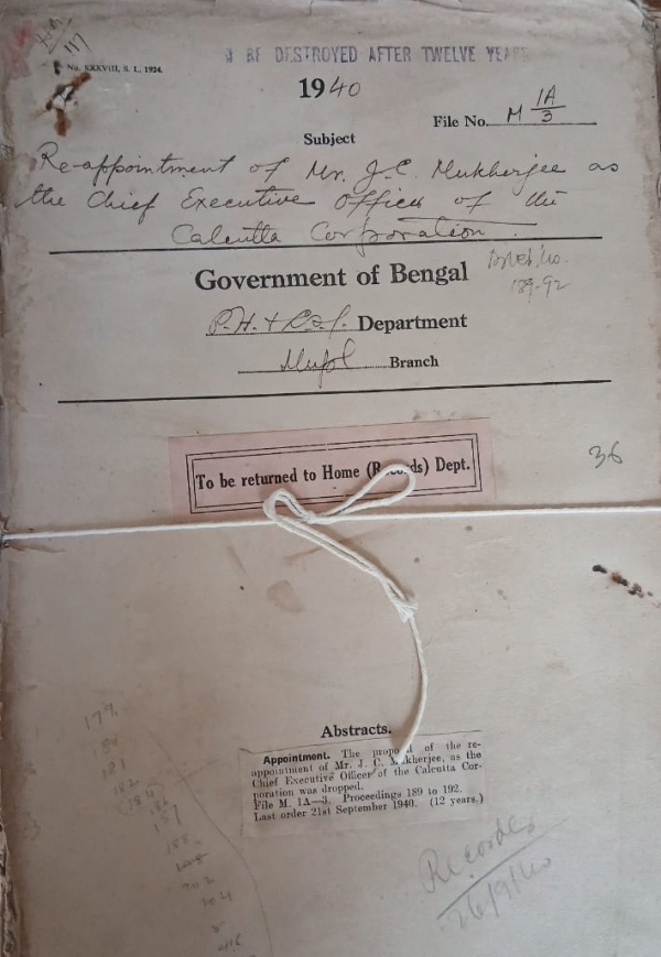 Re-appointment of MR. J.C. Mukherjee as the Chief executive officer of the Calcutta Corporation.