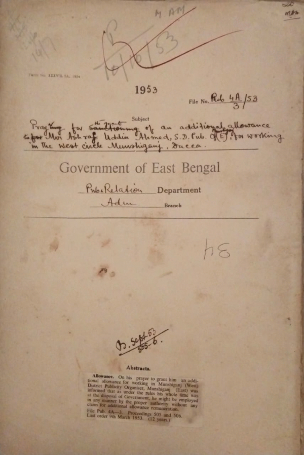 Pray for the grant of an additional allowance to Mir Ashraf Uddin Ahmed, S.D.P. West circle Munshiganj , Dacca.