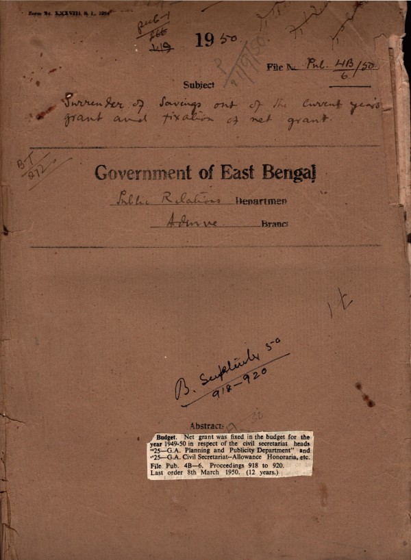 Net grant was fixed in the budget for the year 1949-50 in respect of the Civil Secretariat heads 25-GA. Planning and Publicity Department and 25-GA Civil Secretariat Allowance Honoraria etc