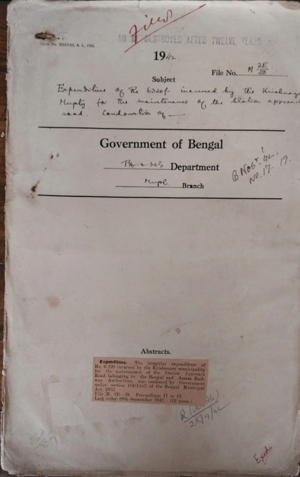 Expenditure of Rs. 6320/- incurred by the Krishnagar Municipality for the maintenance of the Station approach road.