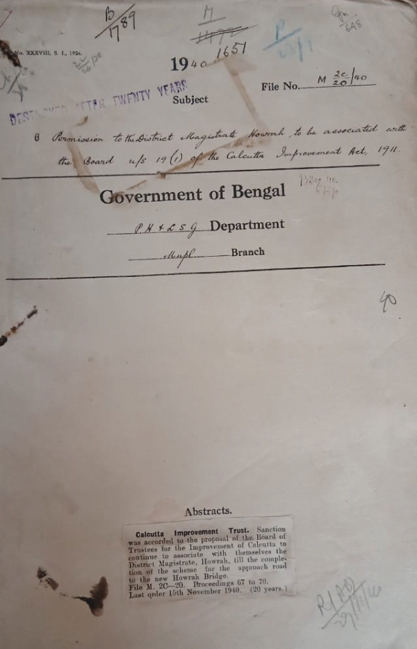 Permission to the District Magistrate Howrah to the associated with the Board U/S. 19(1) of the Calcutta Improvement Act, 1911.