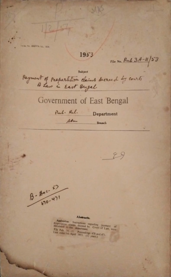 | Rack No. 18, Bundle No. 08, SI No. 574 Payment of rent of requisitioned house kept reserved for the residential accommodation of officers. | Rack No. 18, Bundle No. 08, SI No. 575 Procedure regarding pay of officiating H/A. followed in P.R. department to be reported to C.B.I. Department. | Rack No. 18, Bundle No. 08, SI No. 576 Establishment of a film unit in the P.R. Department. | Rack No. 18, Bundle No. 08, SI No. 577 Payment of prepetition claims decreed by courts of law in East Bengal. | Rack No. 18, Bundle No. 08, SI No. 578 Grant of Special Loan to Mr. M.S.A. Wafa, A.D.P. | Rack No. 18, Bundle No. 08, SI No. 579 Drawal of pay of govt. servants proceeding abroad on temporary official duty. | Rack No. 18, Bundle No. 08, SI No. 580 Permission to pre-partition govt. servants to the prescribed scale of pay of their present posts. |