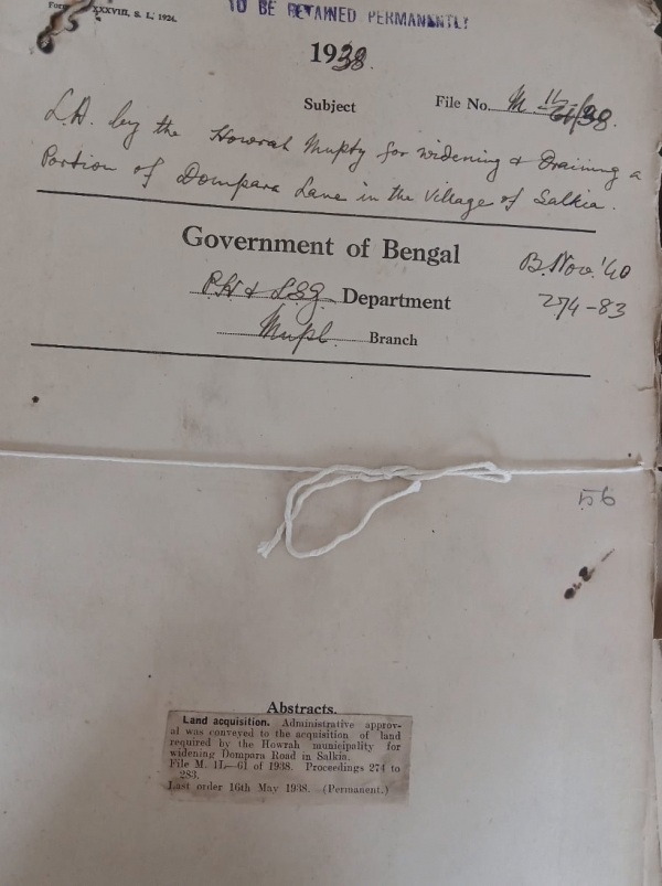 L.A. by the Howrah Municipality for widening and draining a portion of Dompara Lane in the village of Salkia.