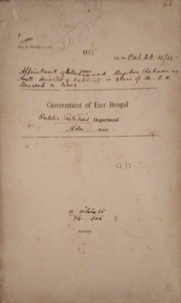 | Rack No. 18, Bundle No. 08, SI No. 578 Grant of Special Loan to Mr. M.S.A. Wafa, A.D.P. | Rack No. 18, Bundle No. 08, SI No. 579 Drawal of pay of govt. servants proceeding abroad on temporary official duty. | Rack No. 18, Bundle No. 08, SI No. 580 Permission to pre-partition govt. servants to the prescribed scale of pay of their present posts. | Rack No. 18, Bundle No. 08, SI No. 581 Appointment of Mohd. Mujibur Rahman as A.D. of publicity in place of Mr S.M. Maswood on leave. | Rack No. 18, Bundle No. 08, SI No. 582 Sanction for purchase of two copies of daily newspepers for the use of the D.P.O.s and S.D.P.Os. | Rack No. 18, Bundle No. 08, SI No. 583 Supply of information regarding services of Mvi. Md. Abu Sayed, D.P.O. Dinajpure. | Rack No. 18, Bundle No. 08, SI No. 584 Grant of house buildings advance to Mvi. Mosharraf Ali Chowdhury a record supplier of this Department. |