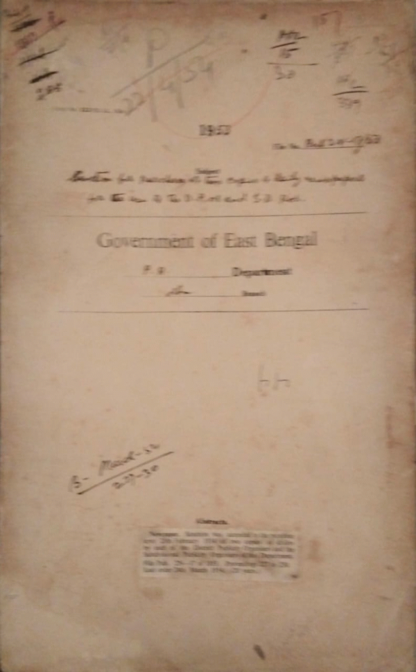 | Rack No. 18, Bundle No. 08, SI No. 579 Drawal of pay of govt. servants proceeding abroad on temporary official duty. | Rack No. 18, Bundle No. 08, SI No. 580 Permission to pre-partition govt. servants to the prescribed scale of pay of their present posts. | Rack No. 18, Bundle No. 08, SI No. 581 Appointment of Mohd. Mujibur Rahman as A.D. of publicity in place of Mr S.M. Maswood on leave. | Rack No. 18, Bundle No. 08, SI No. 582 Sanction for purchase of two copies of daily newspepers for the use of the D.P.O.s and S.D.P.Os. | Rack No. 18, Bundle No. 08, SI No. 583 Supply of information regarding services of Mvi. Md. Abu Sayed, D.P.O. Dinajpure. | Rack No. 18, Bundle No. 08, SI No. 584 Grant of house buildings advance to Mvi. Mosharraf Ali Chowdhury a record supplier of this Department. | Rack No. 18, Bundle No. 08, SI No. 585 Re-Transfer of the office of the Bengali Translator to the Administrative control of the Home Department. |