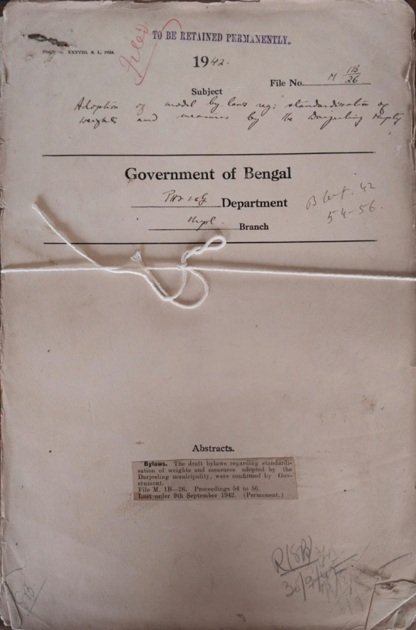 Adoption of model bye-laws regarding standardization of weights and measures by the Darjeeling Municipality.