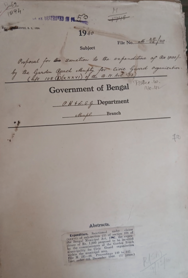 Proposal for sanction to the expenditure of Rs. 1000/- by the Garden Reach Municipality for Civic Guard organization.