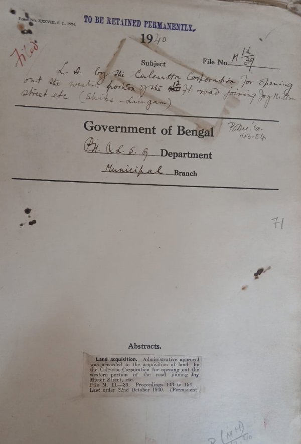 LA. by the Cal. Corporation for opening out the western portion of the 12ft road Joining joy Mitter Street, Etc.