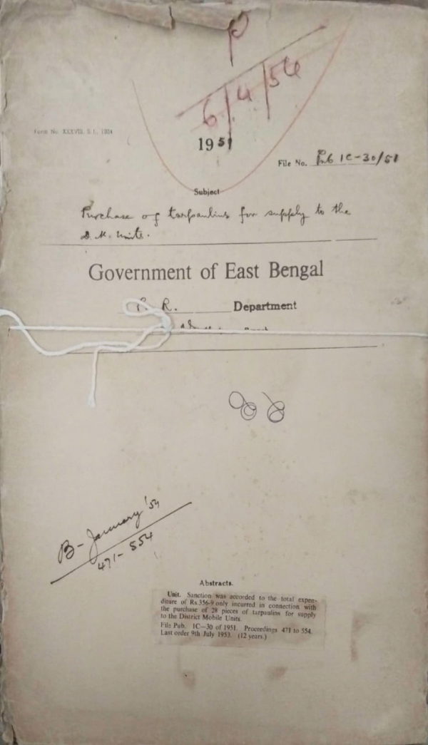 | Rack No. 18, Bundle No. 09, SI No. 590 Revision of the rates dearness allowance for gazetted officers. | Rack No. 18, Bundle No. 09, SI No. 591 Revision of pay scale of the posts in the district and sub-divisional publicity organizers head quarters. | Rack No. 18, Bundle No. 09, SI No. 592 Return of second hand parts of govt. vehicles t the central workshp, Tejgoan. | Rack No. 18, Bundle No. 09, SI No. 593 Purchase of tarpaulins for supply to the D.M. Units. | Rack No. 18, Bundle No. 09, SI No. 594 Reversion of Mvi. A. Samad Khan to his deputation to the ministry of foreign affairs and C.R. Govt. of Pakistan. | Rack No. 18, Bundle No. 09, SI No. 595 Cost of acquisition of the amplifier set requisitioned by the D.M. Jessore from congress committee. | Rack No. 18, Bundle No. 09, SI No. 596 Renewal of Radio Licenses. |